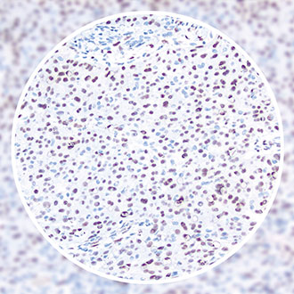 WT1(Wilms' Tumor 1),分子量51.2 kDa,是一种转录因子,定位于染色体11p13。主要表达在中胚层起源的泌尿生殖道组织、间皮组织及良恶性间皮瘤、肾母细胞瘤(Wilm’s 瘤)、促结缔组织增生性小圆细胞瘤(DSRCT) 及一些白血病中,在泌尿生殖系统的发育过程中起到重要作用。WT1抗体可用于诊断促结缔组织增生的小圆细胞瘤和Ewing肉瘤及原始神经外胚层肿瘤。