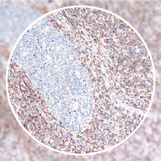 CD1a,分子量37 kDa,是一种转移膜蛋白,隶属CD1蛋白家族。主要表达在胃肠道上皮细胞、B淋巴细胞、树突状细胞和70%的胸腺细胞中,具有向T细胞呈递微生物脂质抗原的能力。CD1a抗体可用于标记T细胞及其淋巴瘤、朗罕氏细胞及其肿瘤,还可用于胸腺癌与肺肿瘤的鉴别诊断,并可与S-100、CD68抗体联用用于郎罕氏组织细胞增多症的标记。